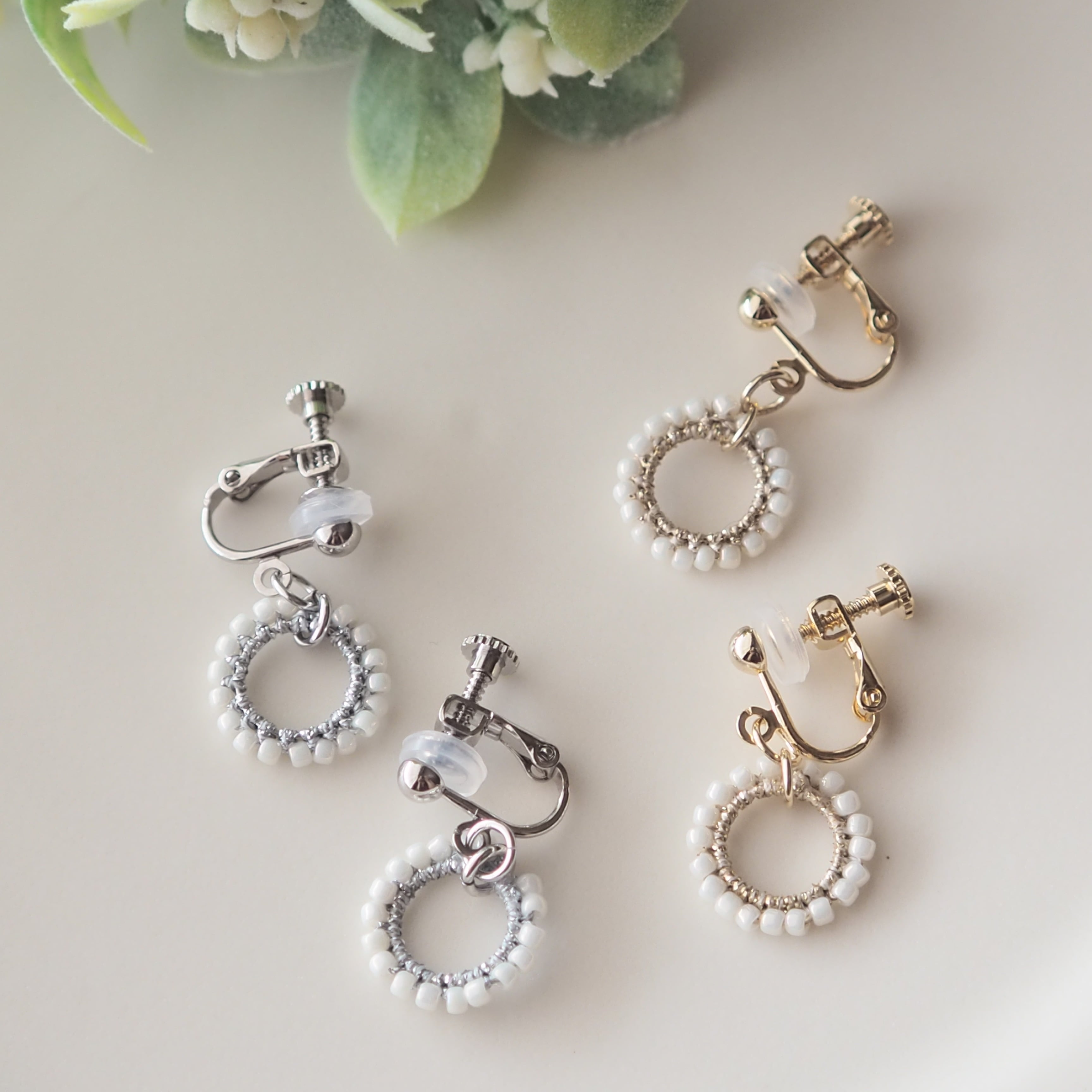 金具:金属メッキ加工、ピアスキャッチ(樹脂)、イヤリングカバー(樹脂)